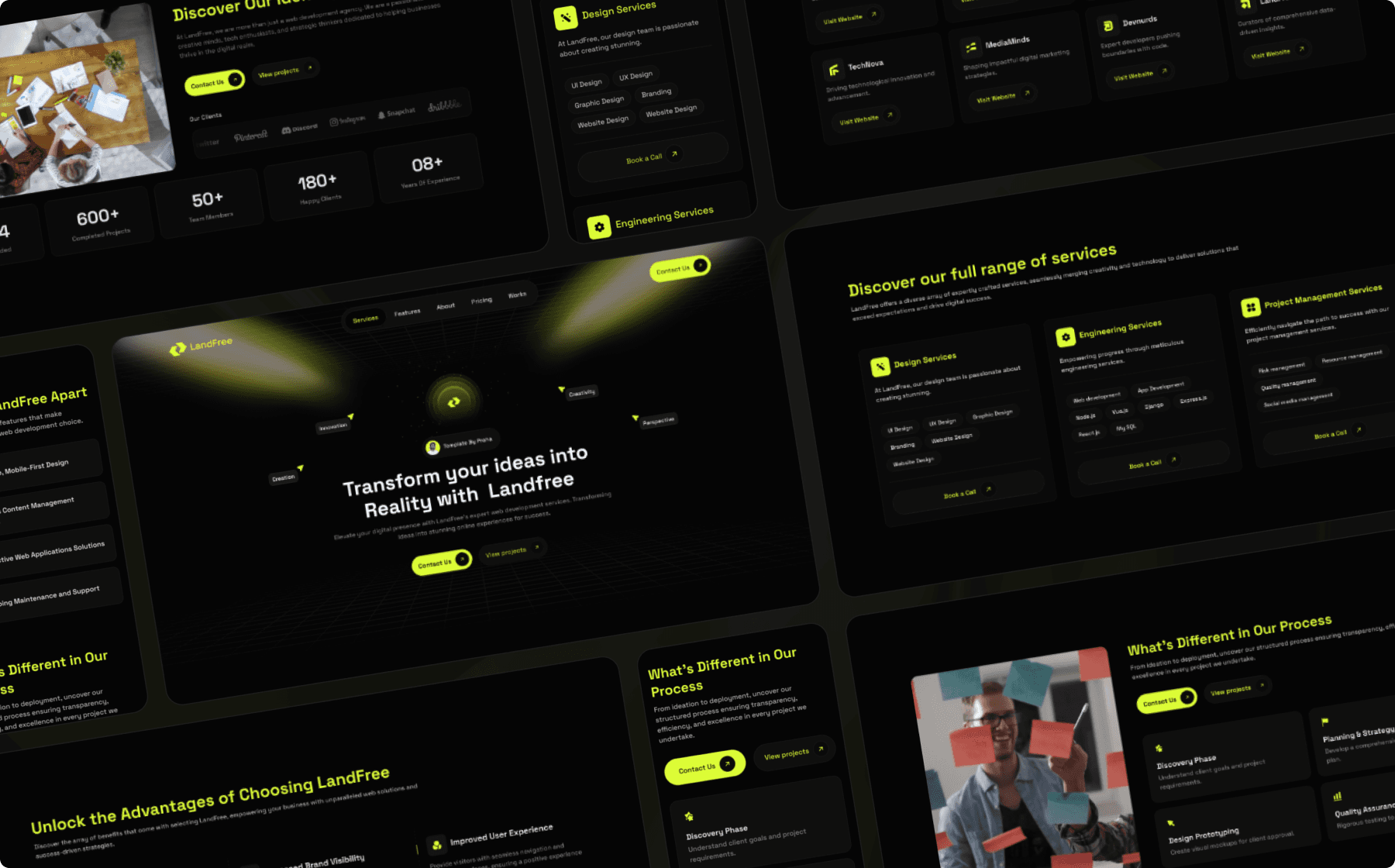 LandFree is a Dark Landing Page website template, tailor-made for presenting your company's vital information, projects, and more. Ideal for a diverse range of entities, including agencies, companies, and startups.